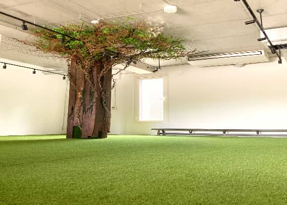 中庭も備えた店内は広々ケージレスでのびのびとしたペットホテル生活を実現。